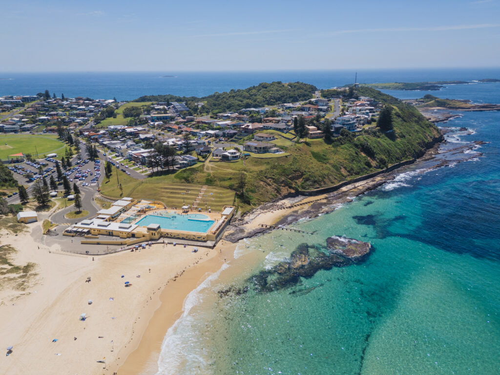 From the temple, take a short drive to Port Kembla Beach. Port Kembla Beach is a favourite among locals, stretching wide and uncrowded, ideal for surfing or a bracing ocean swim. Alternatively, swim laps at Port Kembla Pool, one of the largest ocean pools in the region. The scale and openness contrast beautifully with the CBD beaches experienced earlier in the trip.