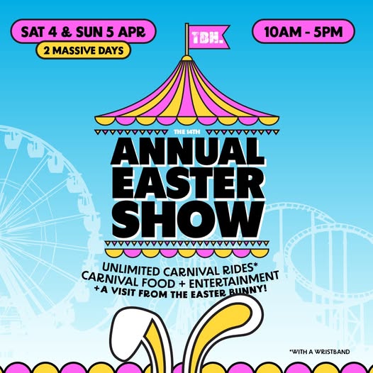 Expect carnival rides, sideshow games, food stalls and plenty of classic show treats like fairy floss and snow cones. There’ll also be roaming performers, stilt walkers, showgirls and even a special visit from the Easter Bunny.