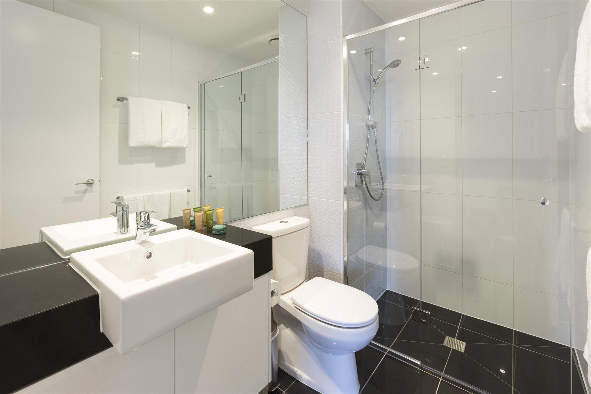 Comfortable lounge areas include a 40” Smart TV and BluRay/DVD player. Fully equipped kitchens have stone bench tops and modern stainless steel appliances. Fully tiled bathrooms also include a combo washing machine and dryer. Every apartment also has individually controlled heating and air conditioning. Most 2 & 3 bedroom apartments have an ensuite bathroom to the master bedroom.