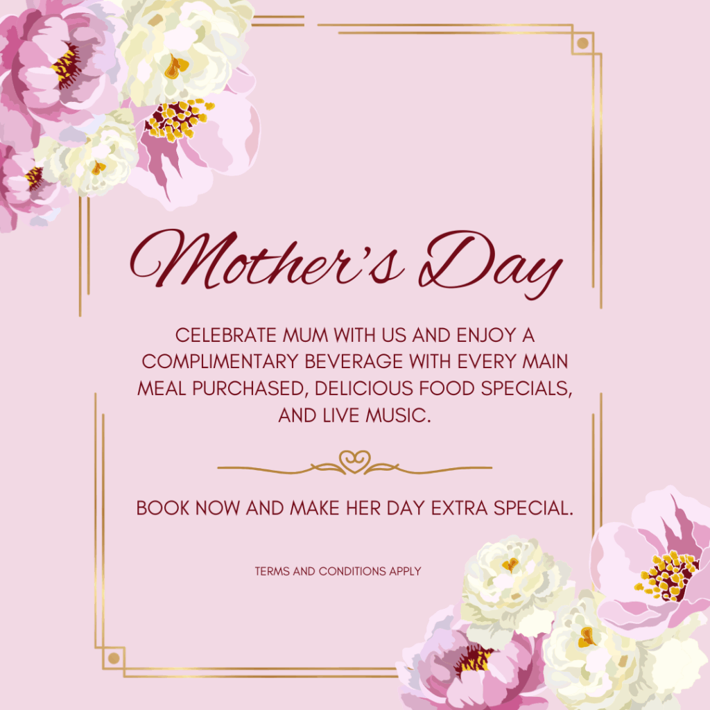 Enjoy a relaxed meal across their eateries or dive into one of the Mother’s Day specials, then settle in as live music from Kate Young sets the vibe from 2pm.