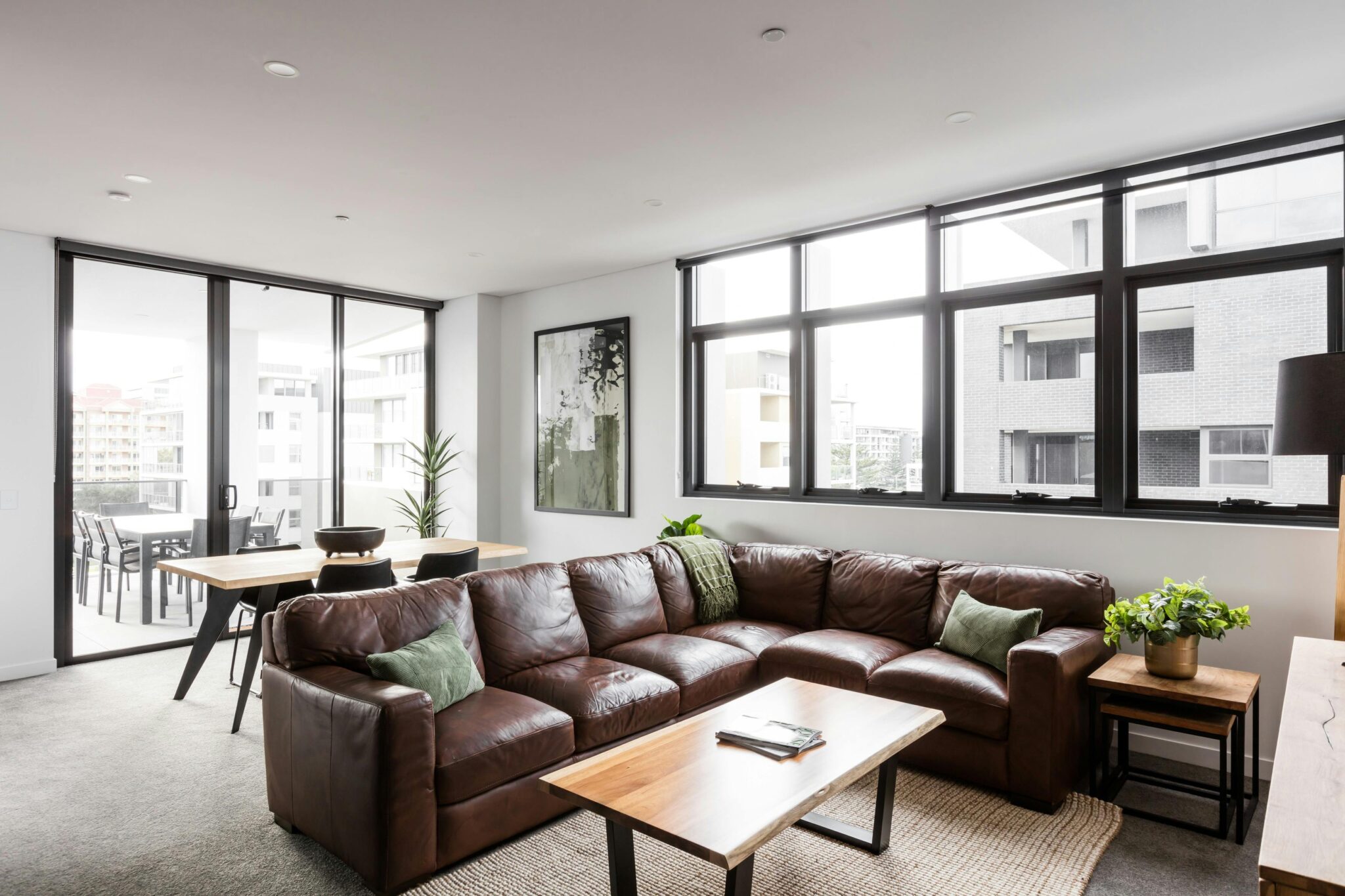 Each apartment includes air-conditioning, a balcony, a washing machine, a patio, a private bathroom, a kitchen, a tea and coffee maker, a hairdryer, a dining table, outdoor furniture, a walk-in shower, refrigerator, work desk, seating area, free toiletries, microwave, dishwasher, shower, carpeted floor, TV, sofa, and tiled floors.