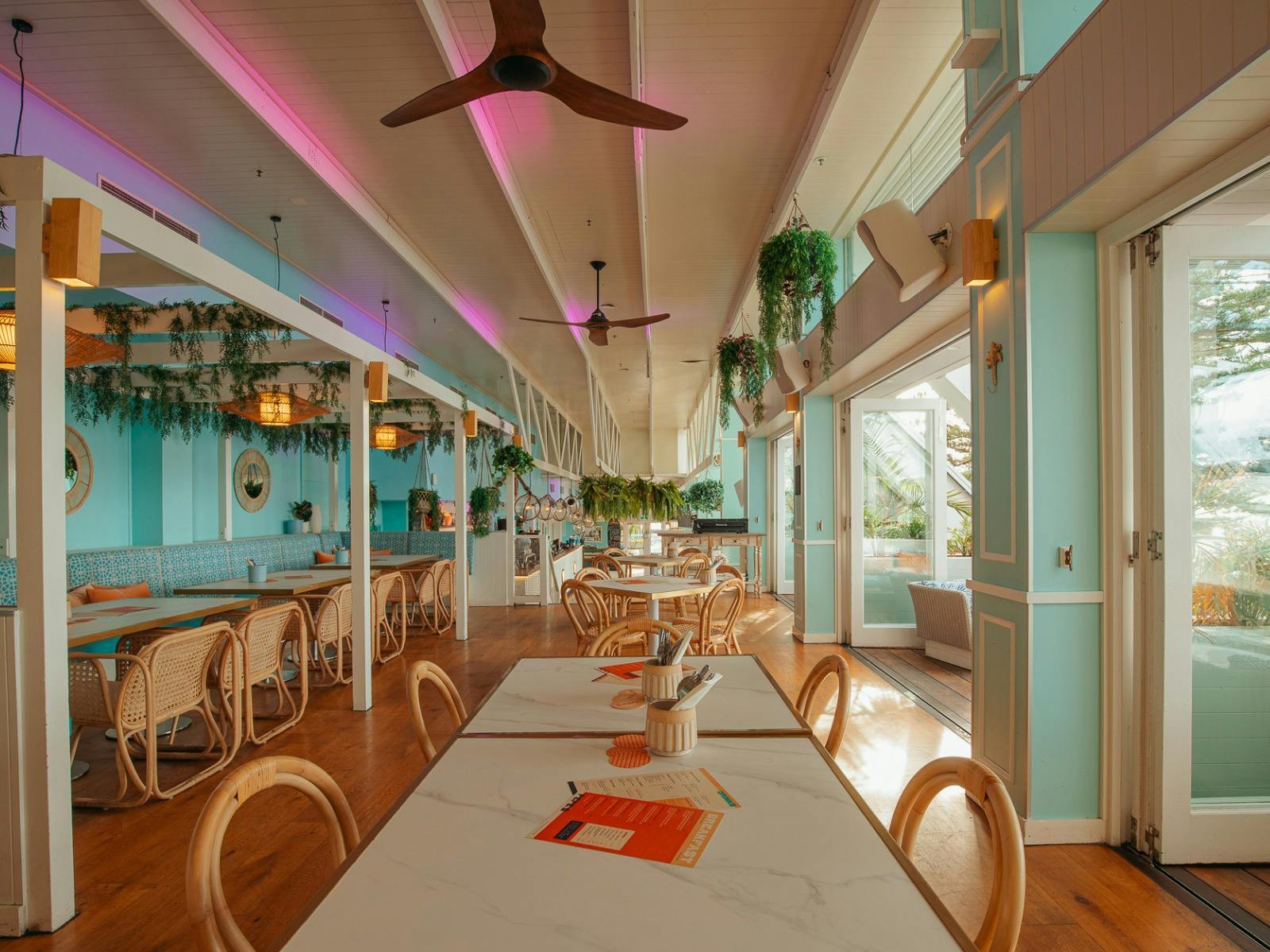 The large-scale deck is a key feature in the design and concept of the bar, it defines the cultural fabric they are trying to emulate – both Mediterranean and Australian lifestyles are all about relaxed, outdoor living and they bring this to you complete with hanging chairs and beach views whilst being nestled among the palm trees.