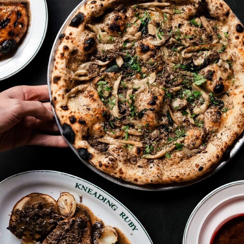 The menu champions seasonal produce and wood-fired perfection, with plenty of love shown to plant-based diners. Vegan and vegetarian options slide seamlessly into the line-up – think golden pumpkin fritta, addictive polenta chips, and a mushroom pizza that rivals any meaty counterpart. Whether you’re sharing plates with a big group or indulging in your own feast, Kneading Ruby proves that veg-friendly dining can be both refined and downright delicious.