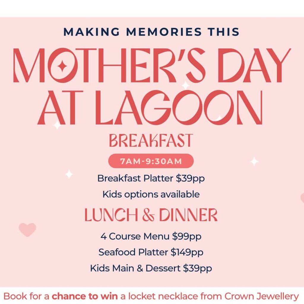 Guests can enjoy a specially curated three-course set menu by the sea, designed to spoil Mum and bring the family together. The set menu is priced at $95 per adult and $27 per child, offering a delicious way to mark the occasion in a stunning coastal setting. Bookings are essential.